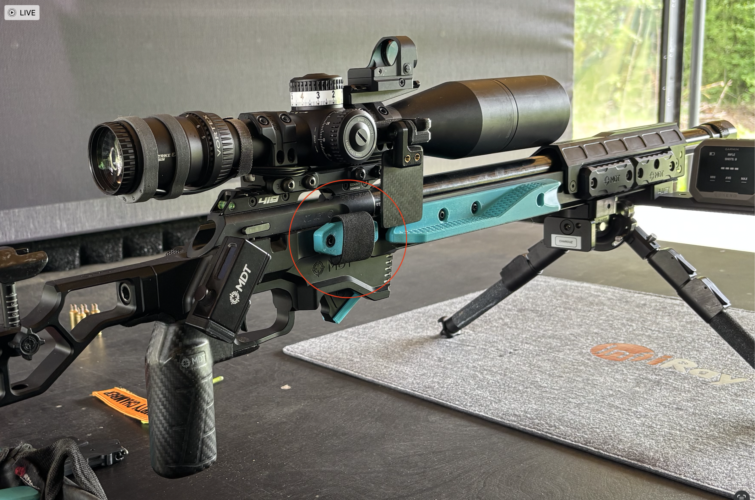 The mount uses the MLOK system to mount on your chassis. It fits perfectly on the MDT ACC, but can be mounted in any MLOK slot. The body is made out of a durable polymer and the strap from a stretchy nylon band, that conforms to your magazine and holds it perfectly, with just the right amount of tension.